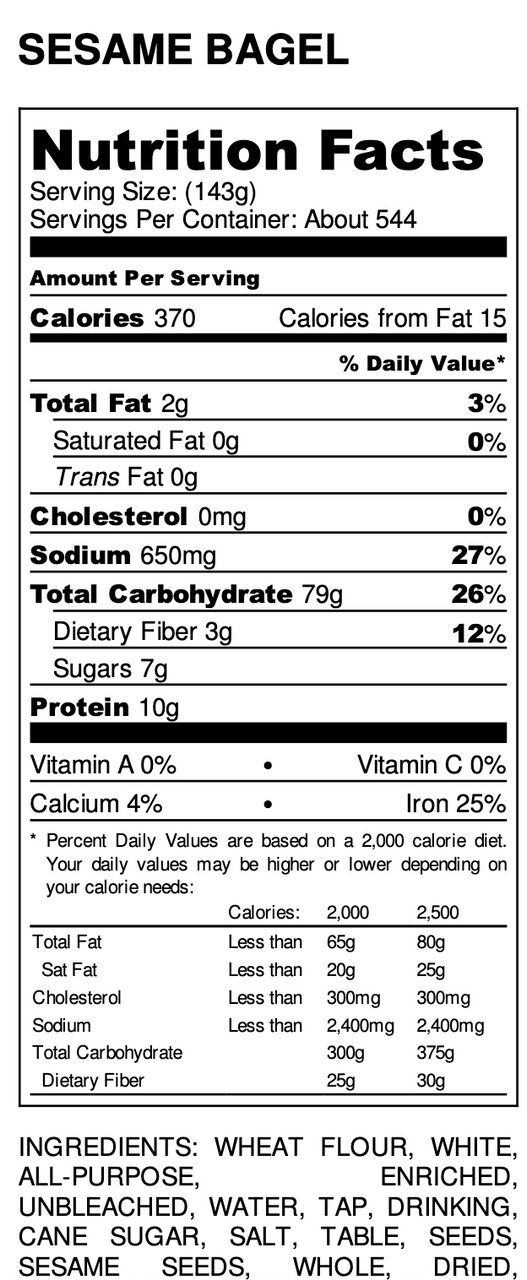 "WE USE ALL NATURAL PRODUCTS FOR OUR BAGELS AND 0 PRESERVATIVES, IF YOU ARE NOT PLANNING ON EATING THEM RIGHT AWAY WE DO RECOMMEND FREEZING THEM! DO NOT WORRY, THEY TASTE LIKE JUST BAKED WHEN DEFROSTED!"